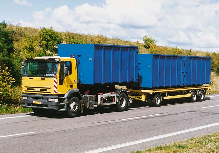 Jednoramenný nosič kontejnerů CTS 14045 v soupravě s přívěsem pro přepravu kontejnerů M.S.T.S.
